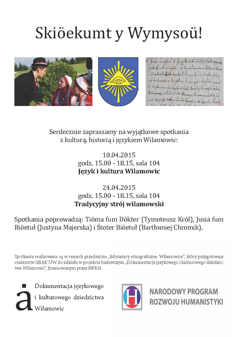 • 10.04.2015, godz. 15.00 - 18.15, sala 104 - Język i kultura Wilamowic